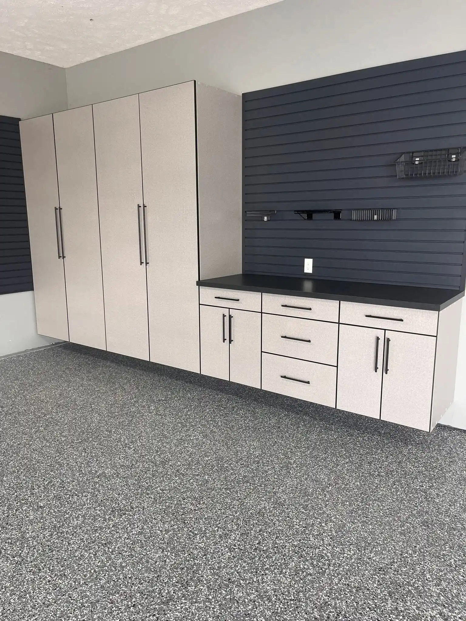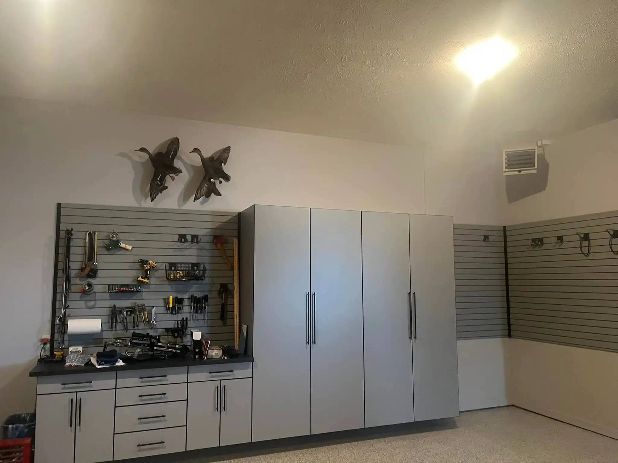 These garage shelving ideas in Omaha will surely inspire you to envision the possibilities in your garage. Take a look at our shelving system today. Get items up and off the floor and see how much more floor space you can create by utilizing your walls.